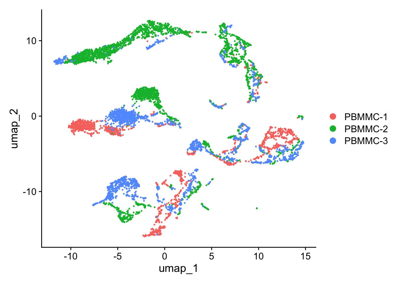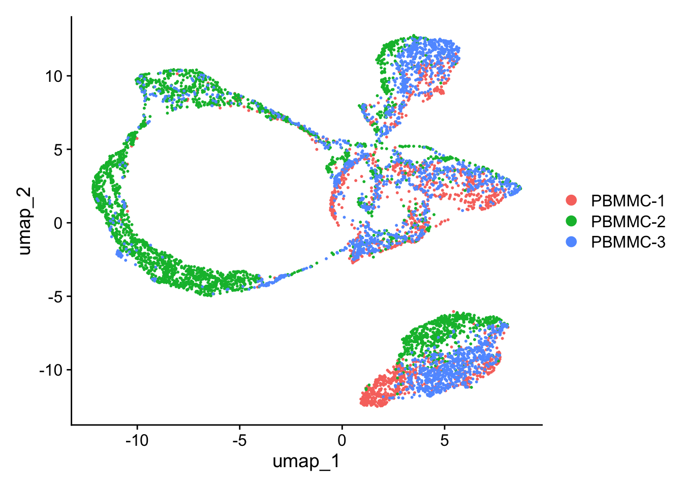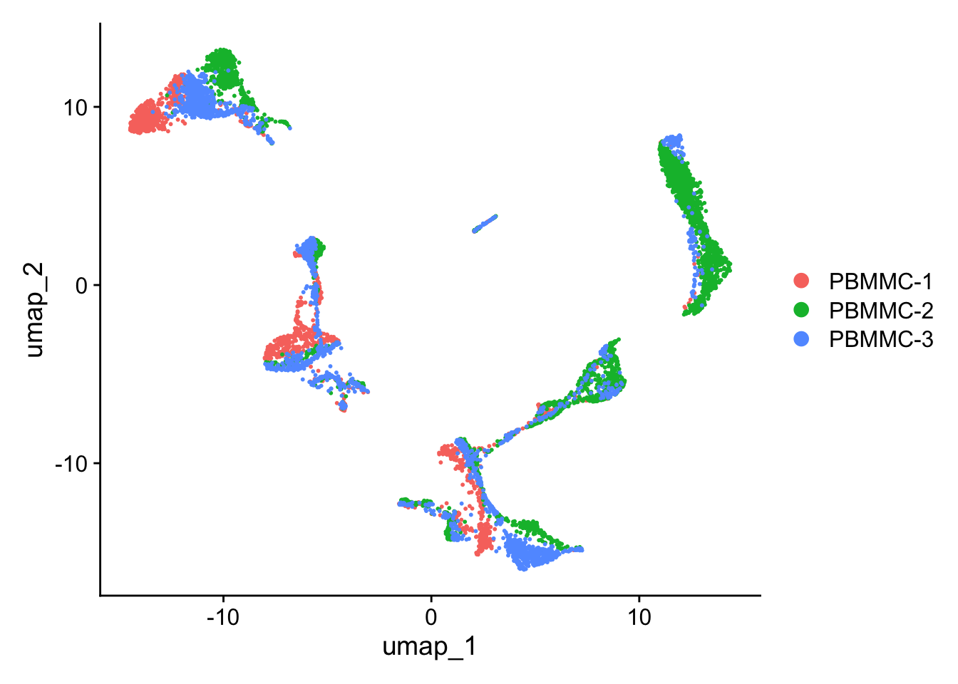 seu <- Seurat::RunUMAP(seu, dims = 1:50) Seurat::DimPlot(seu, reduction = "umap")