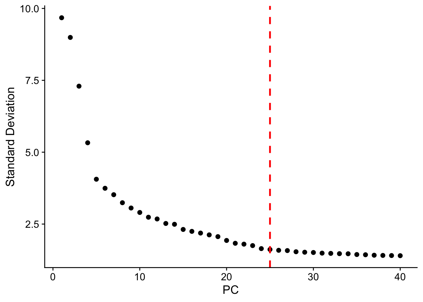 Seurat::ElbowPlot(seu, ndims = 40) +