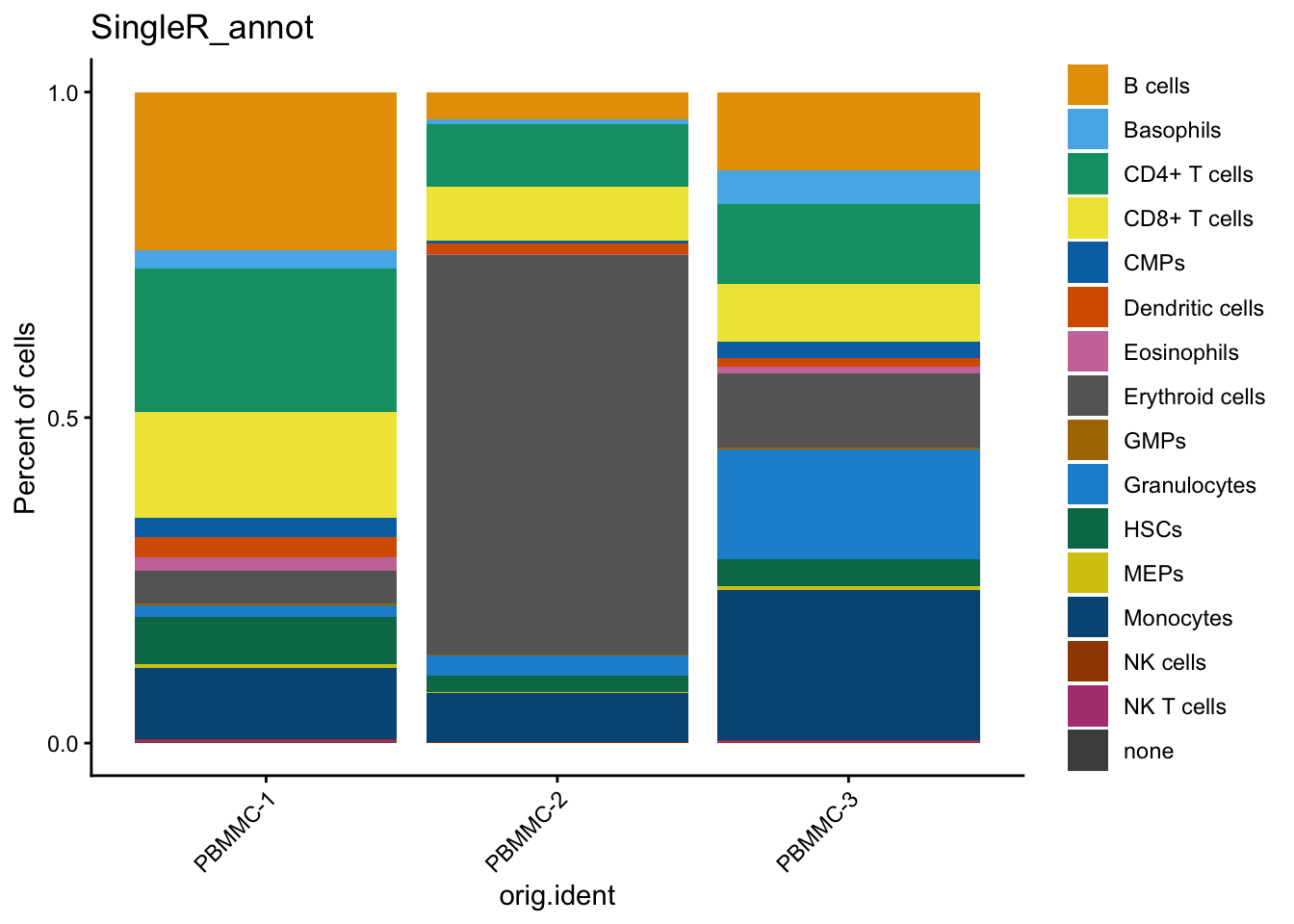 dittoSeq::dittoBarPlot(seu, var = "SingleR_annot", group.by = "orig.ident")