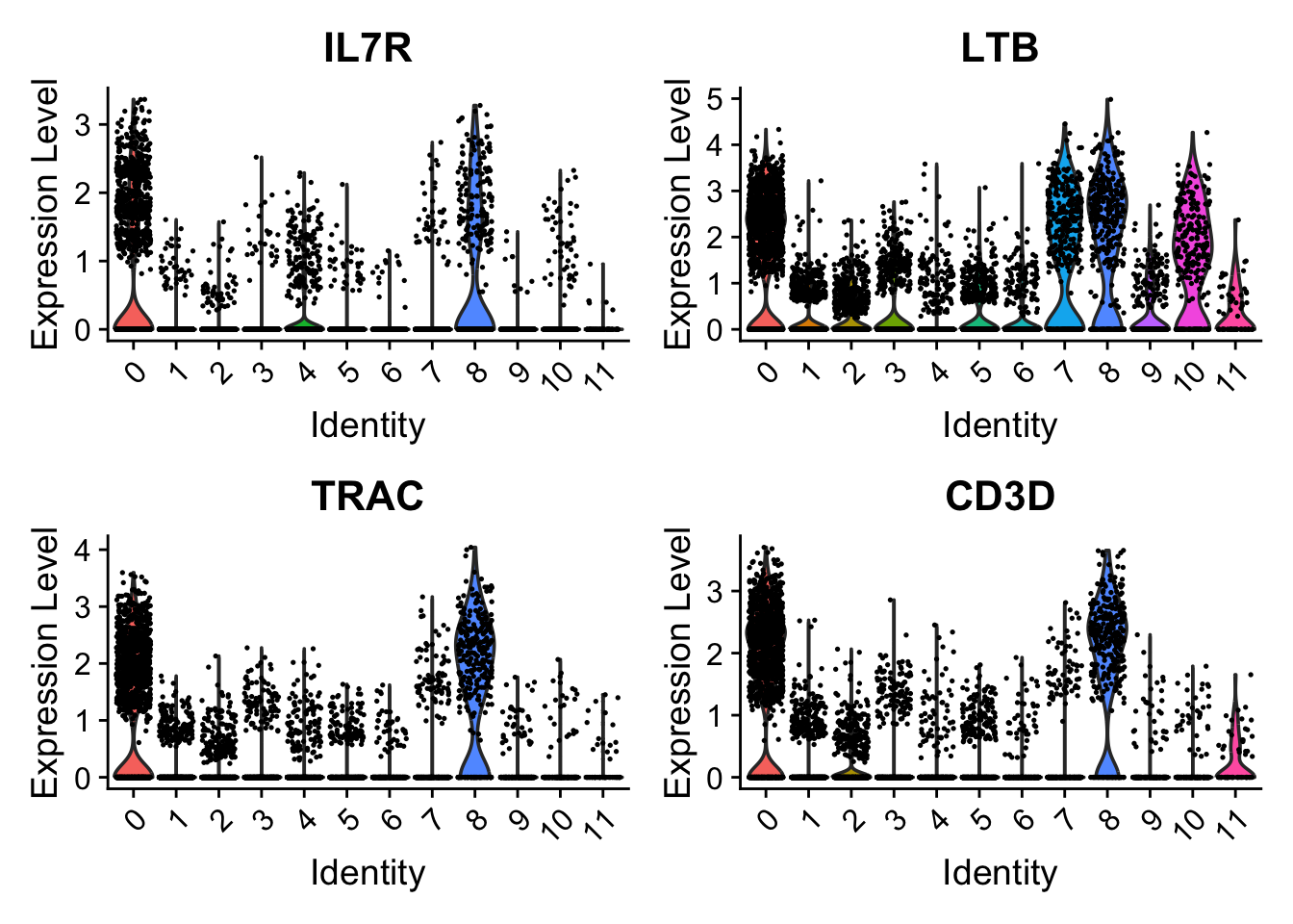 Let’s have a look at the expression of the four T cell genes: